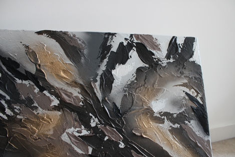 Great ways of creating this abstract and getting the result I wanted, is by adding heavy textures, mixed media, paint work, colour contrasting, spray paint, acrylic paint, paint markings, palette knife work, water mix, details and using different types of metallics.